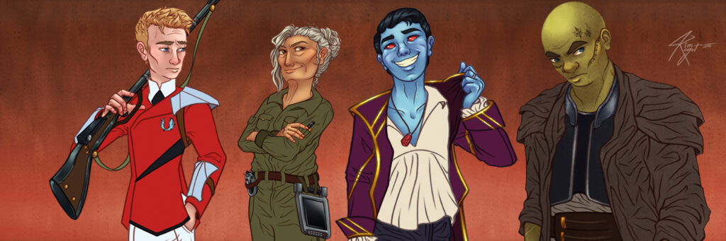 This campaigns character art was done by Kim Kogut, who is no longer on social media but can be found on the excellent Blades in the Dark podcast The Magpies